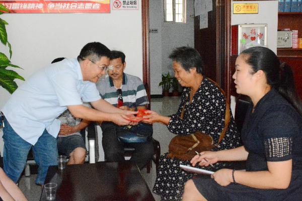 为贯彻落实“两学一做”学习教育,推行党员教育管理制度常态化,以实际行动为生活困难群众办实事、办好事,7月29日,我院机关第五党支部书记张雪松、副书记杨飞等一行6人,在滨江社区蒲书记陪同下走访慰问低保户,为社区困难户送上关爱和温暖。