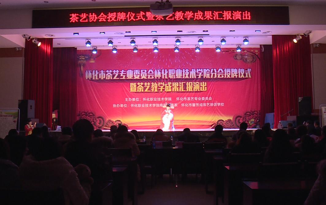 1212日,怀化茶艺专业委员会怀化职业技术学院分会授牌仪式暨茶艺教学成果汇报演出在我院举办。院党委书记胡佳武、院长王聪田、怀化茶艺专业委员会主任王英、湖南方诚茶业有限公司总经理田清文及多名学院领导出席授牌仪式,数百名学生代表及新闻媒体参加了此次活动。